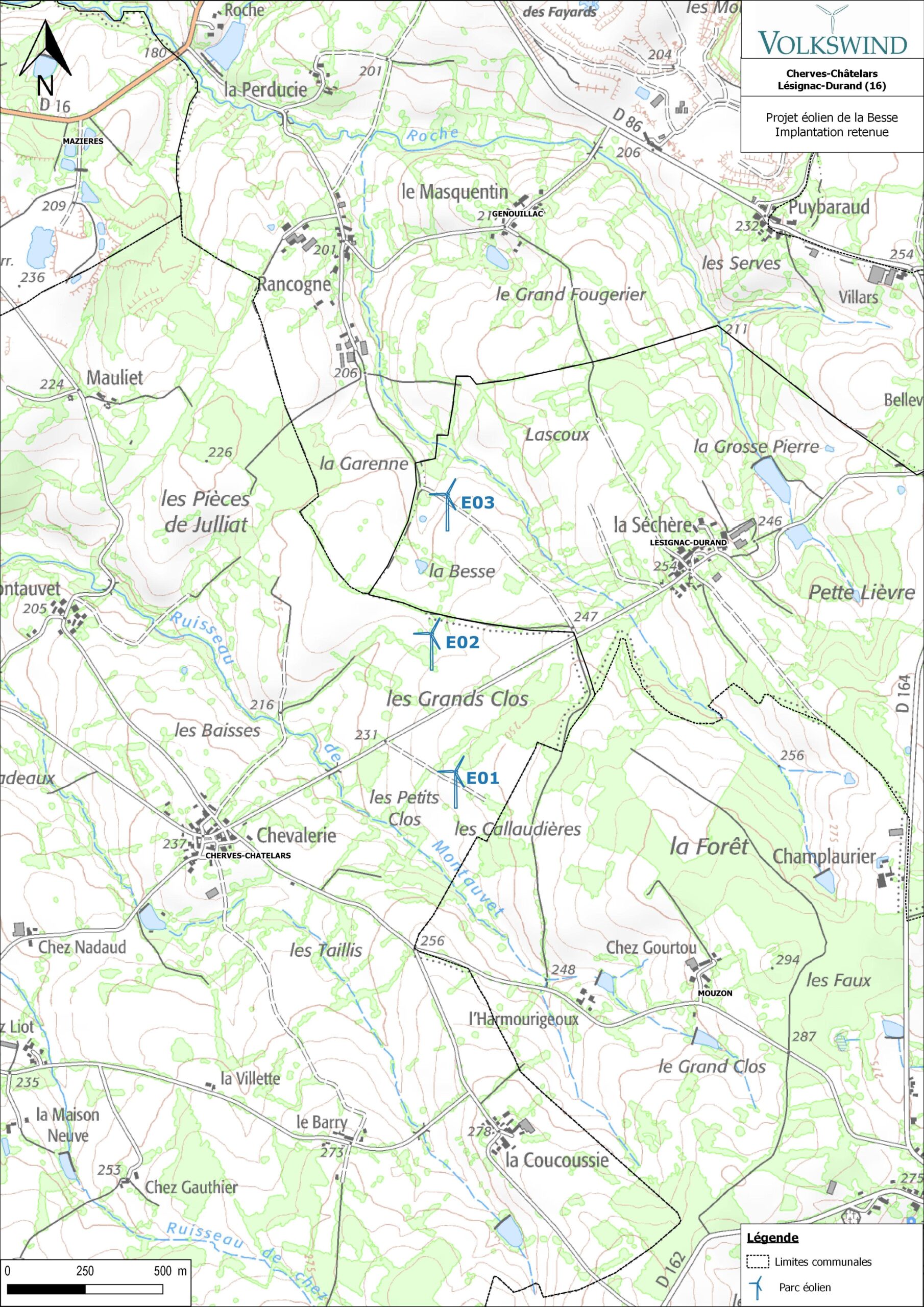 Délibérations des conseils municipaux de Cherves-Châtelars, Genouillac, Lésignac-Durand et Mouzon en faveur du projet éolien